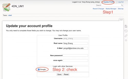 To log in, click the Google button under “Login with other Service”. In the next screen, it will allow you to select the Google account you want to use. Login to your account and you should then log in to the Wiki automatically. The Wiki will not save any Google password on the server.
