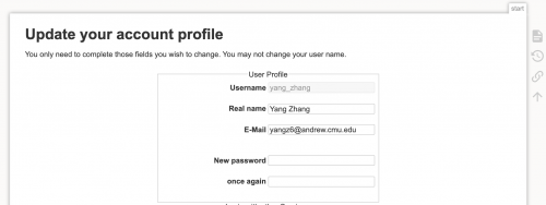 After log in, you can update your profile (e.g., changing password) by clicking the Update Profile on the top-right.